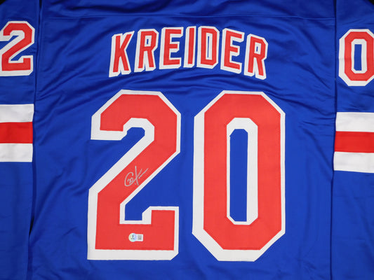 Chris Kreider Signed Autographed New York Rangers Blue Hockey Jersey BAS COA