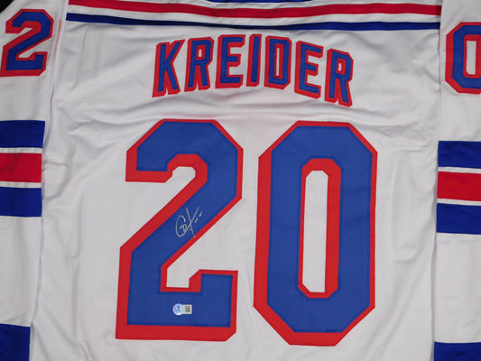 Chris Kreider Signed Autographed New York Rangers White Hockey Jersey BAS COA