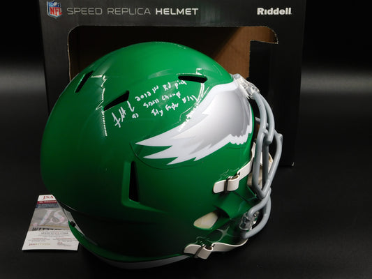 Fletcher Cox Signed Autographed Inscribed Full Size Eagles Kelly Green Speed Helmet JSA COA
