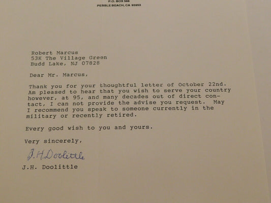 General James JH Doolittle Signed Autographed Typed Letter JSA LOA Pearl Harbor