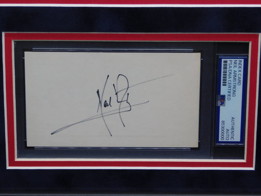 Neil Armstrong Signed Autographed Framed 3x5 Index Card Apollo 11 NASA Astronaut PSA Slabbed
