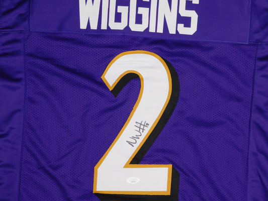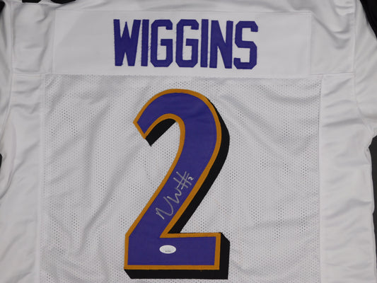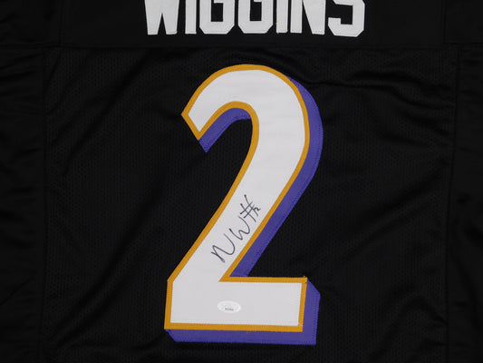 Nate Wiggins Signed Autographed Baltimore Ravens Purple Football Jersey JSA COA