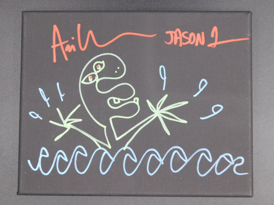 Ari Lehman Signed Hand Drawn Artwork Sketch 12x12 Canvas Jason Voorhees Friday The 13th JSA COA