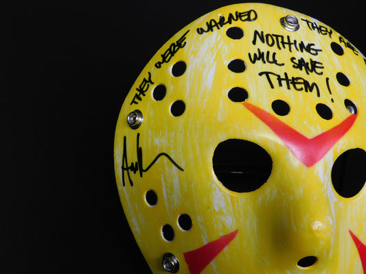 Ari Lehman Signed Autographed Jason Voorhees Yellow Hockey Mask Friday The 13th Quote JSA COA