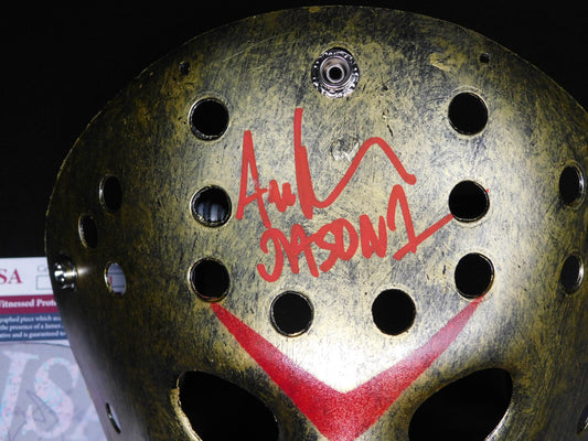 Ari Lehman Signed Autographed Jason Voorhees Gold Hockey Mask Friday The 13th JSA COA