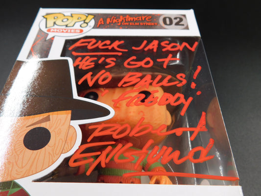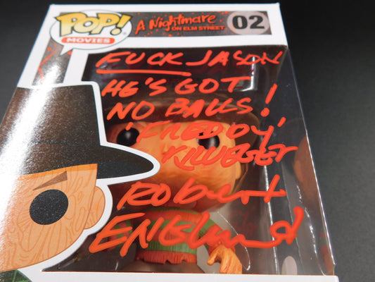 Robert Englund Signed Autographed Funko Pop 02 Freddy Krueger F**k Jason He's Got No Balls JSA COA A