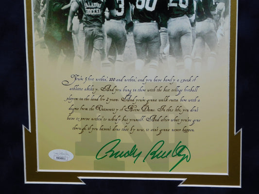 Rudy Ruettiger Signed Autographed Framed Movie Poster Notre Dame Fighting Irish JSA COA