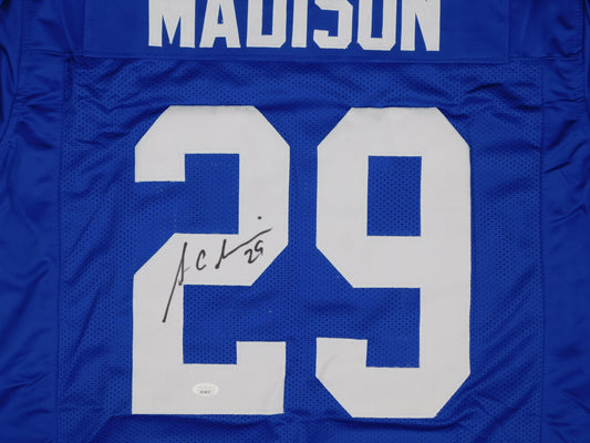 Sam Madison Signed Autographed New York Giants Blue Football Jersey JSA COA