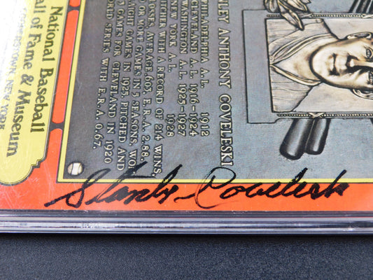 Stanley Coveleski Signed Auto Red HOF Plaque Postcard 1979 Dexter Press SGC Slab