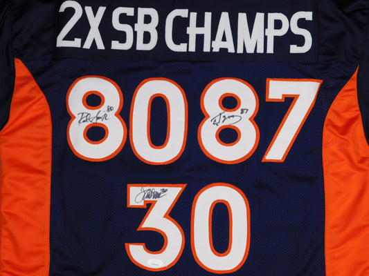 Terrell Davis Ed McCaffrey & Rod Smith Multi Signed Broncos SB Champs Blue Jersey JSA COA