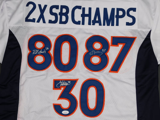 Terrell Davis Ed McCaffrey Rod Smith Multi Signed Broncos SB Champs White Jersey JSA COA