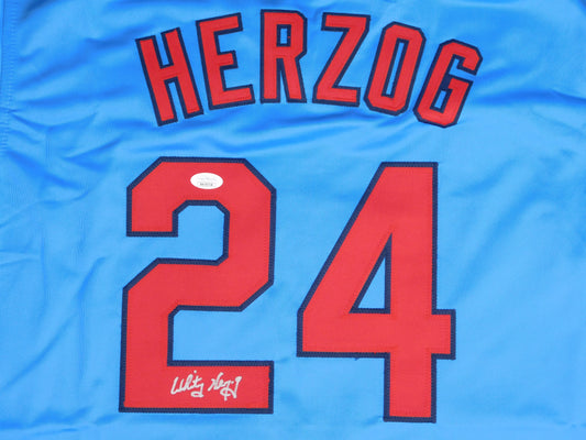 Whitey Herzog Signed Autographed St Louis Cardinals Blue Baseball Jersey HOF JSA COA