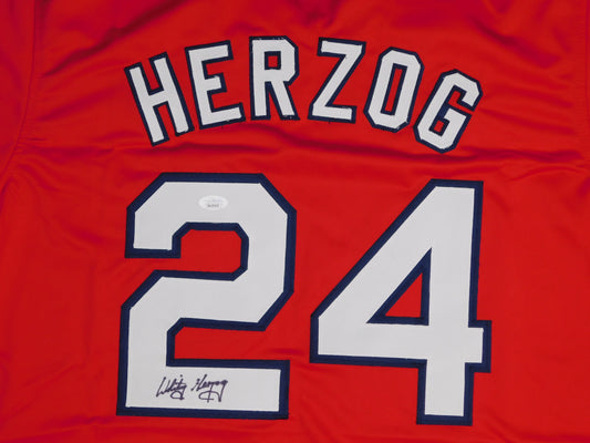 Whitey Herzog Signed Autographed St Louis Cardinals Red Baseball Jersey HOF JSA COA