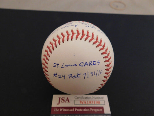 WHTIEY HERZOG Signed / Autographed OML Stat Baseball JSA COA Cardinals HOF