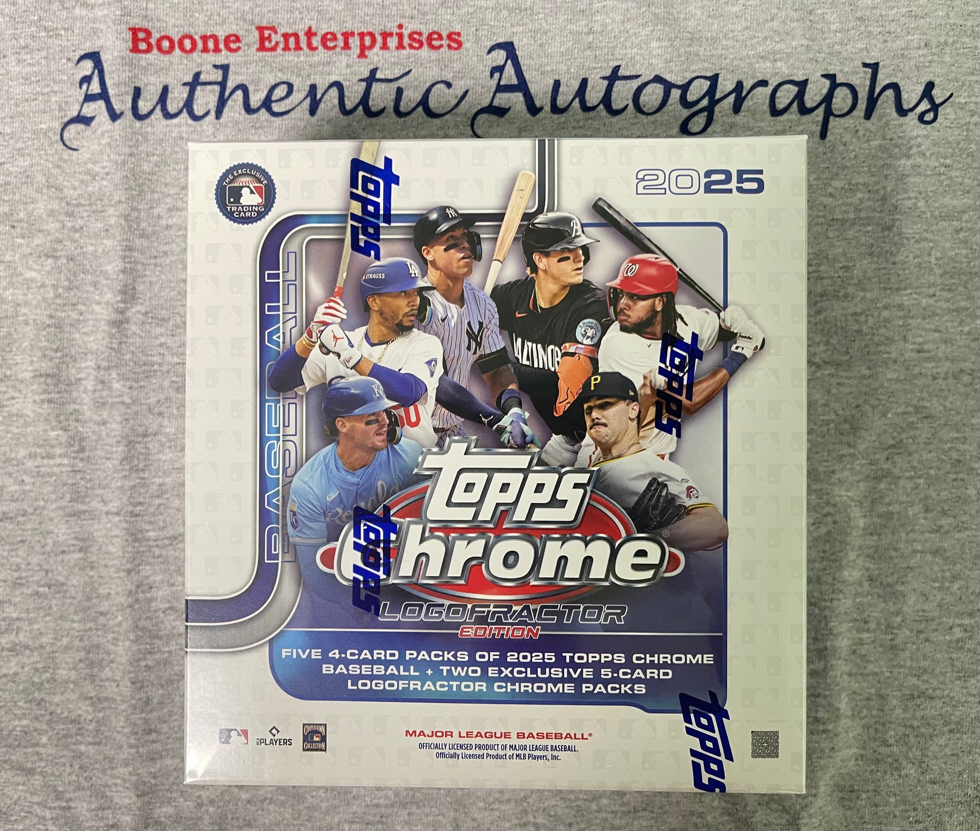 The 2025 Topps Chrome Logofractor Baseball Mega Box is a sealed box containing 30 standard-sized trading cards featuring baseball players. The set is the Topps Chrome Logofractor Edition, manufactured by Topps in 2025. Each card is authenticated by Topps and is in English language. This product is a must-have for collectors and fans looking to add exclusive baseball trading cards to their collection.