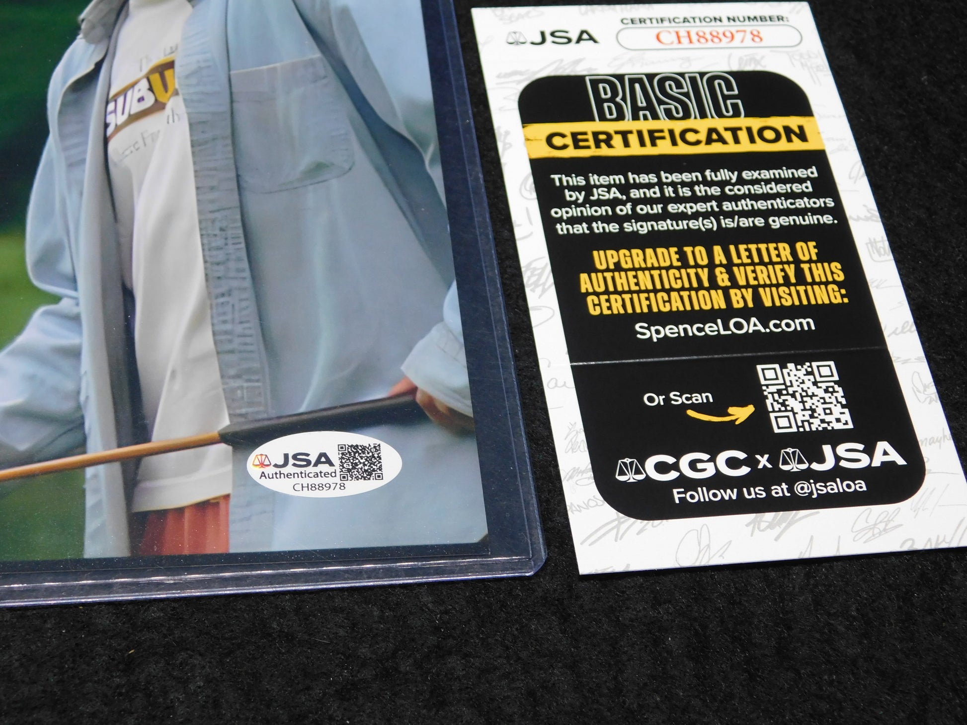 The product is an 8x10 photograph of the character Shooter McGavin from the movie Happy Gilmore, signed by actor Chris McDonald. The autograph has been authenticated by James Spence (JSA). Showcasing genuine autograph of the actor who portrayed the beloved character from the popular movie.