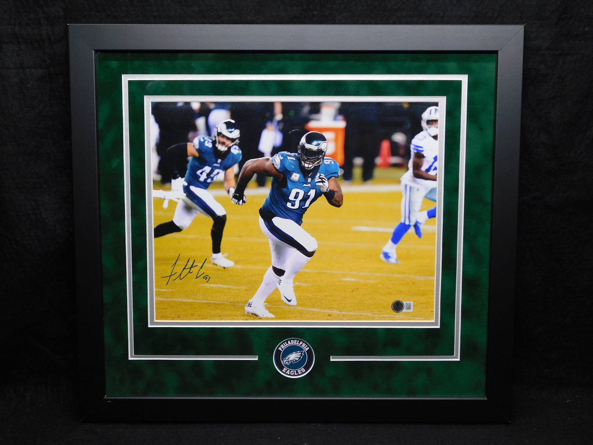 Capture a piece of football history with this authentic 11x14 photo signed by Fletcher Cox of the Philadelphia Eagles. This original autograph is certified by Beckett Authentication Services, assuring its legitimacy and adding significant value to your collection. Framed elegantly, this piece is ready to be the centerpiece of any fan's showcase. A must-have for any Eagles enthusiast or football memorabilia collector, the photo showcases the talent of one of the NFL's standout defensive players. Add a touch of professional sports excitement to your decor with this exclusive piece, complete with a BAS Certificate of Authenticity.