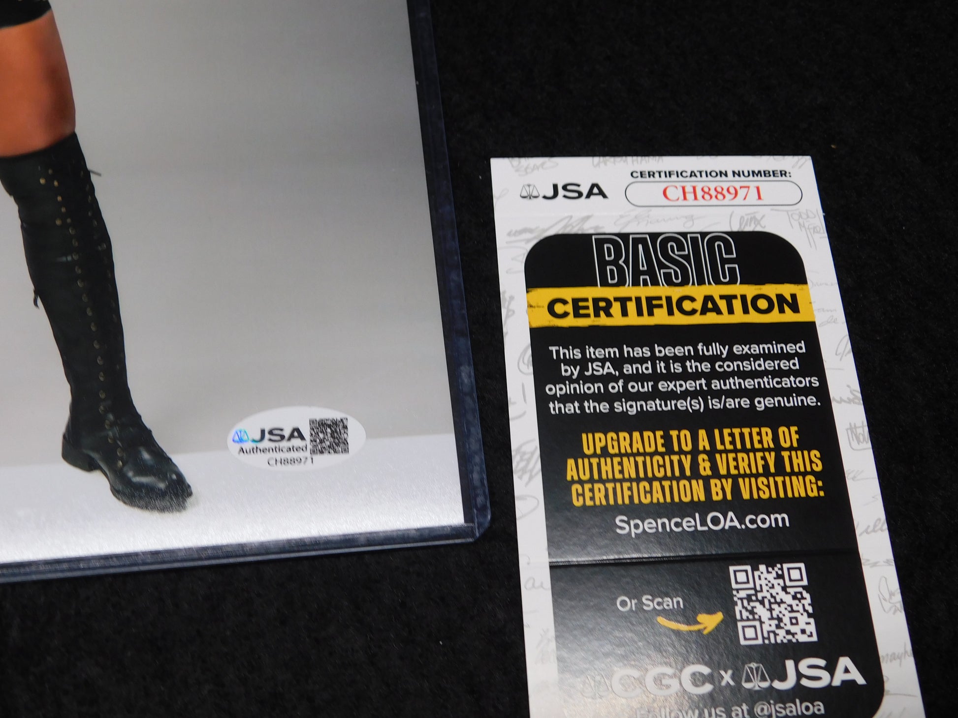 The product is an 8x10 photo signed by TNA Knockout wrestler Gail Kim. This autographed photo is authenticated by James Spence Authentication (JSA) . Perfect for fans of wrestling and collectors of autographed memorabilia, this item captures a moment in the career of Gail Kim in the wrestling industry.