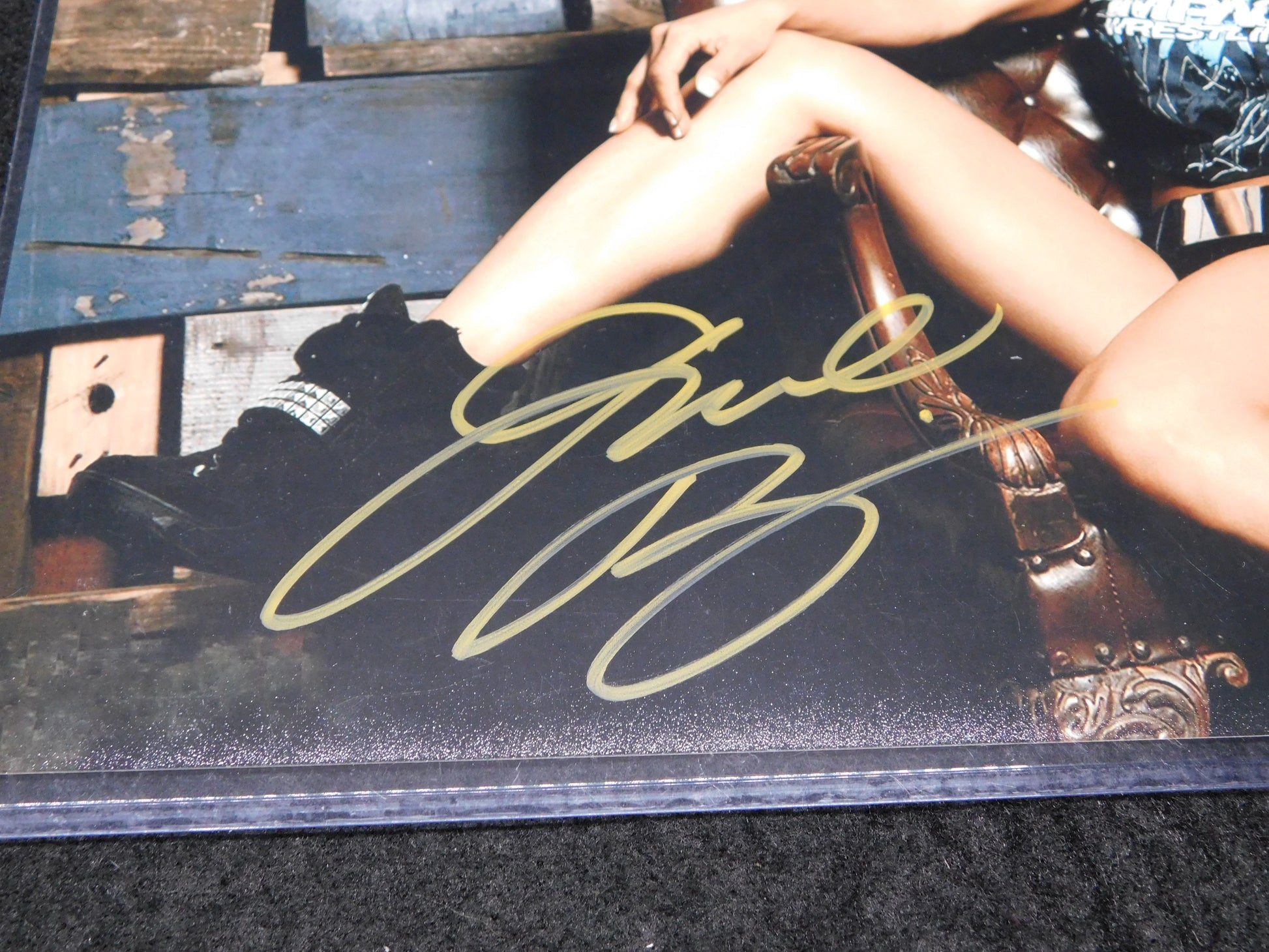 The product is an 8x10 photo signed by TNA Knockout wrestler Gail Kim. This autographed photo is authenticated by James Spence Authentication (JSA) . Perfect for fans of wrestling and collectors of autographed memorabilia, this item captures a moment in the career of Gail Kim in the wrestling industry.