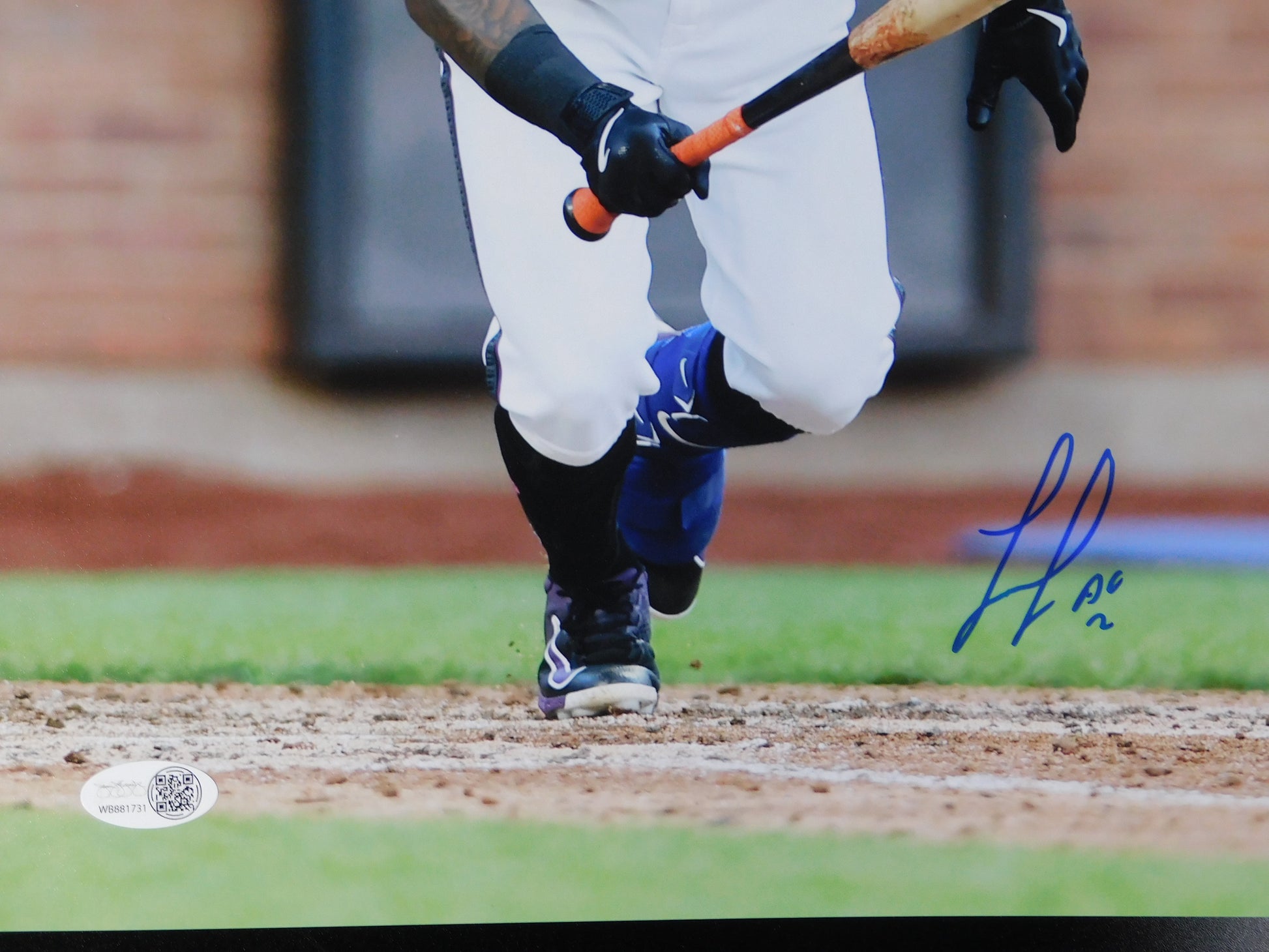 This is an 11x14 photo featuring an autograph from Luisangel Acuña, a young star on the New York Mets. The autograph has been authenticated by James Spence Authentication (JSA), ensuring its authenticity. This original autographed photo would be a valuable collectible for fans of baseball and the New York Mets.
