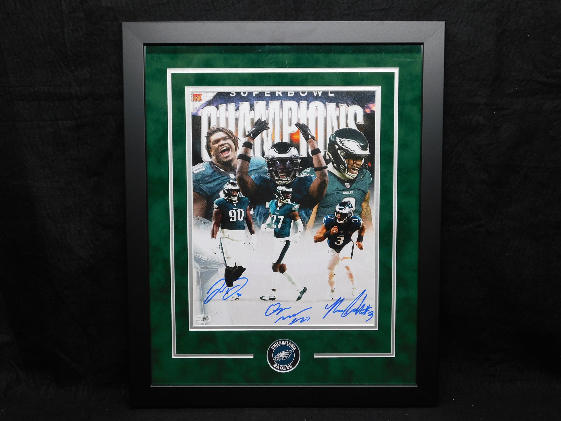 Quinyon Mitchell Jordan Davis Nolan Smith x3 Signed Autographed Framed 11x14 Photo Eagles Champs JSA COA B