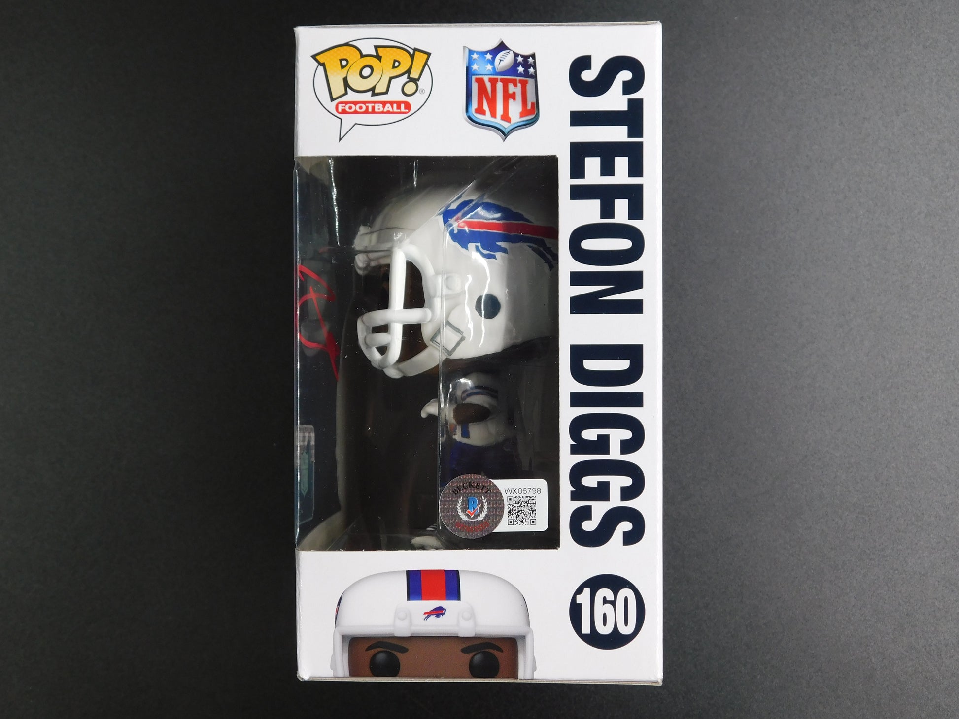 This is a rare Stefon Diggs signed autographed Funko Pop 160 of the Buffalo Bills NFL team. It has been authenticated by Beckett Authentication Services (BAS) and is an original item. This Funko Pop features the popular wide receiver from the Buffalo Bills, making it a unique and valuable collectible for fans of both Stefon Diggs and the NFL team.