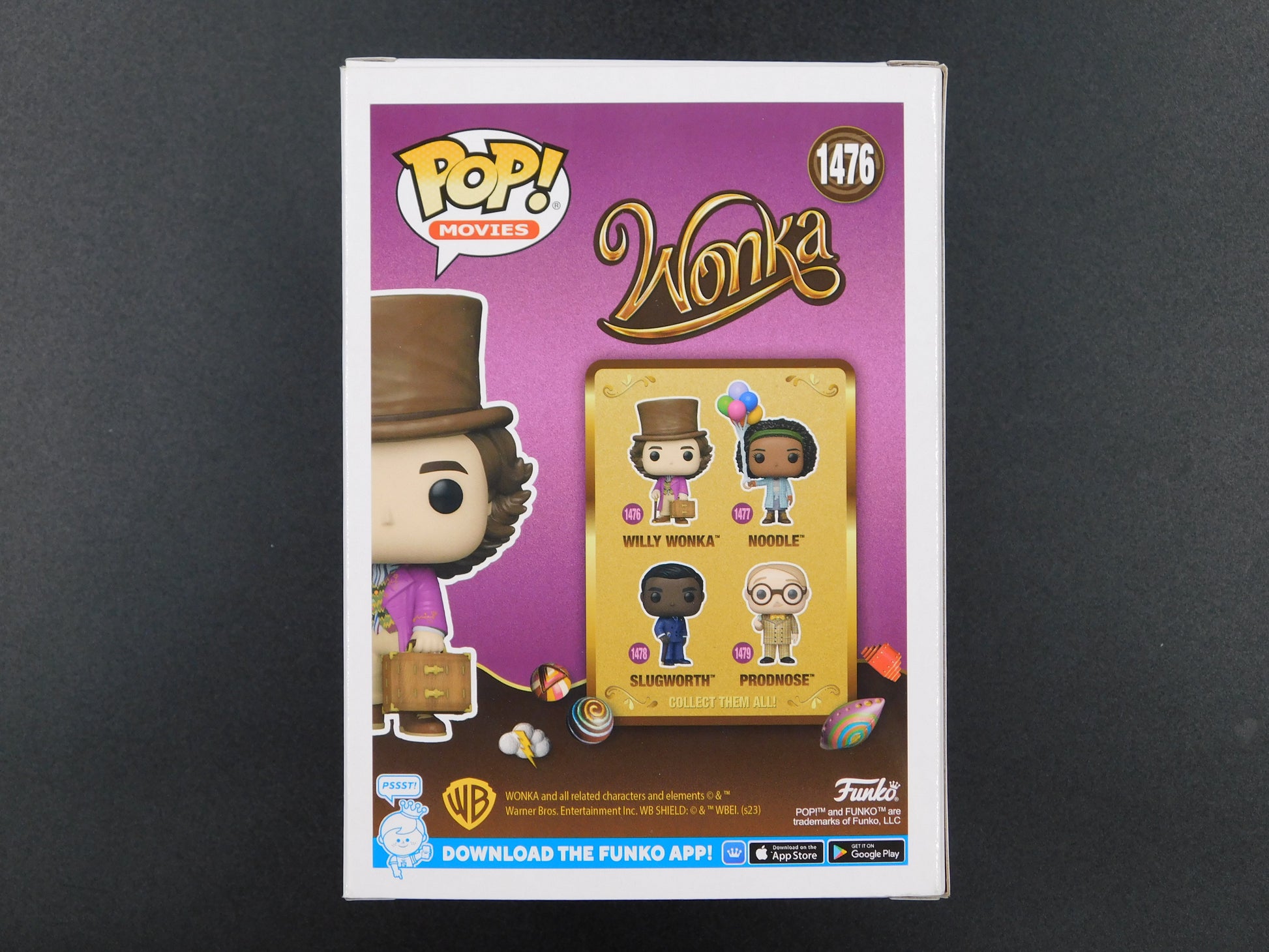 This is a Timothee Chalamet signed Funko Pop 1476 featuring Willy Wonka from the movie "Wonka." The autograph is authenticated by AutographCOA, ensuring its authenticity. This collectible item is a unique piece of entertainment memorabilia for fans of the movie and Chalamet's iconic performance.